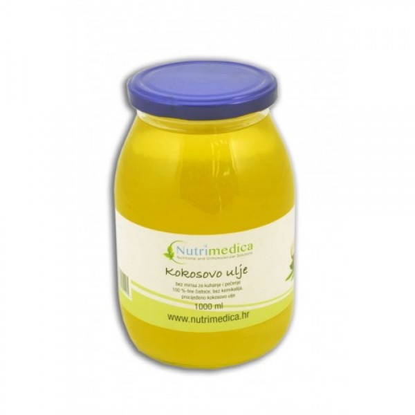 Oznake: Kokosovo ulje, kokosova mast, bez mirisa, 1000ml, ulje kokosa, omega masne kiseline, kardiovaskularne polesti, prženje, pečenje, kuhanje, trans masti, koža, kosa