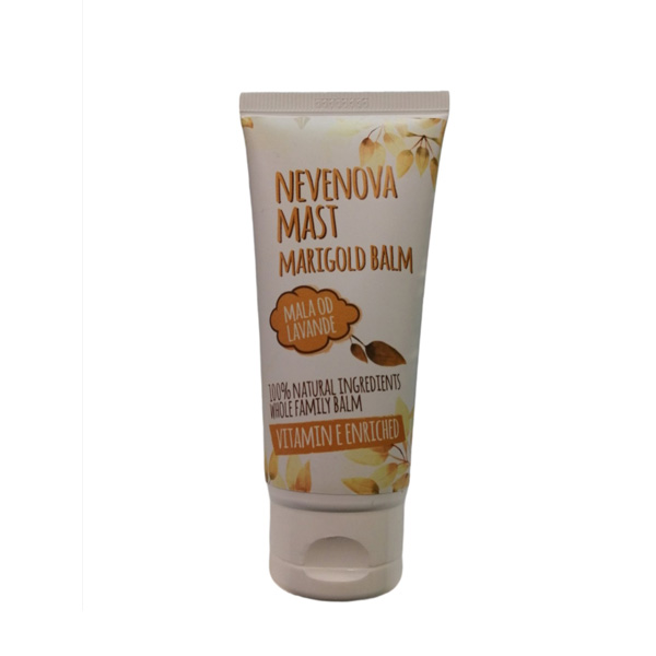 Oznake: suzbija bakterije, mikrobe, viruse i gljivice, djeluje kao antibiotik i antioksidans. Nevenova mast pomaže kod akni, bradavica, cista, čireva, ekscema, hemeroida, herpesa zastore, fistula, impetiga, učinkovito liječi kožne upale i čisti kožu lica, pomaže kod krvarenja, lišaja, mastitisa, opeklina, osipa, opeklina od sunca, sprječava upalu i ubrzava regeneraciju stanica, djelotvorna je kod psorijaze, proširenih vena, saboreje, smrzotina, raznih infekcija kože, gnojnih i običnih rana, upalnih procesa na koži, varikoznih vena i sl.