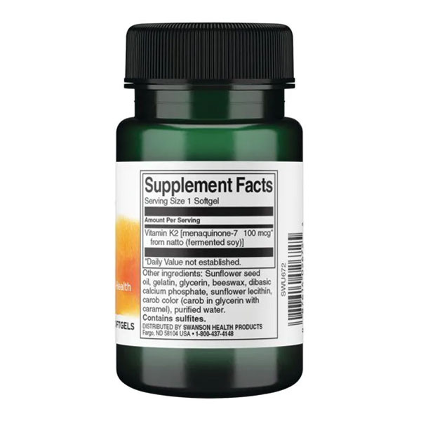 Osnovni sastojak Swanson Vitamina K2 je menakinon-7 biološki najaktivniji oblik Vitamina K2 a proizvodi se od 100% prirodnog japanskog natta (fertmentirane soje) što ovom proizvodu daje dvostruku snagu.