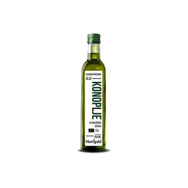 Nutrigold hladno prešano ulje konoplje je potpuno prirodni proizvod dobiven mehaničkim hladnim prešanjem sjemenki ekološki uzgojene industrijske konoplje (cannabis sativa).