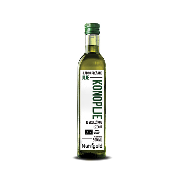 Nutrigold hladno prešano ulje konoplje je potpuno prirodni proizvod dobiven mehaničkim hladnim prešanjem sjemenki ekološki uzgojene industrijske konoplje (cannabis sativa).