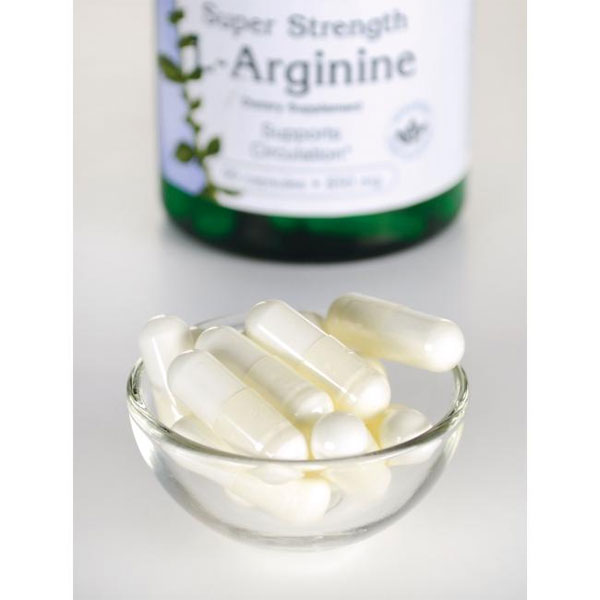 Swanson L-Arginin maksimalne snage je antioksidativna aminokiselina koja potiče proizvodnju dušikovog oksida, spoja koji pomaže u održavanju zdravih i protočnih krvnih žila