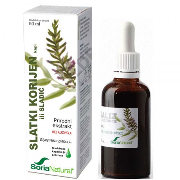 Soria Natural Slatki korijen je prirodni ekstrakt od korijena biološki proizvedene biljke u bezalkoholnoj otopini – mješavini biljnoga glicerina i pročišćene vode. Budući da tinktura ne sadržava alkohol, primjerena je i za djecu, jetrene bolesnike i ostale. Ne sadrži bojila, konzervanse niti druge dodatke.