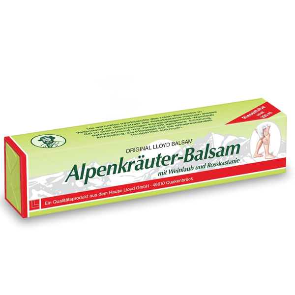 Balzam od alpskog bilja s uljem sibirske jele je proizvod na prirodnoj bazi. Vrijedni sastojci lista crvene vinove loze u kombinaciji s ekstraktom divljeg kestena čine ovaj gel visokokvalitetnim proizvodom za njegu tijela. Balzam od alpskog bilja osvježava i pruža osjetno opuštanje.