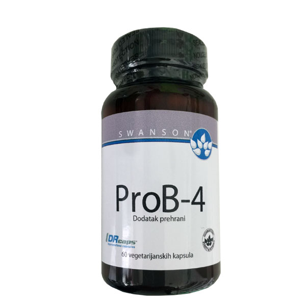 Jedna kapsula Swanson ProB-4 sadrži 3 milijarde organizama probiotičkih bakterija Bifidobacterium lactis, Lactobacillus casei, Lactobacillus acidophilus te Bifidobacterium bifidum za zdravlje probavnog sustava.
