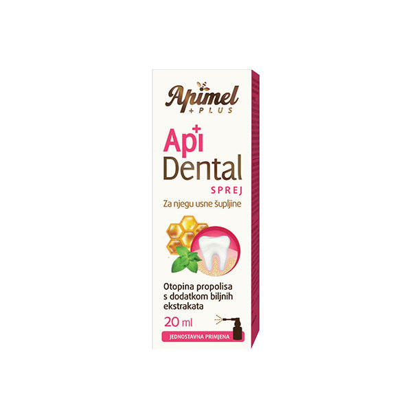 Apidental sprej sadrži tinkturu porpolisa i tinkture ljekovitog bilja (kadulja, ehinacea, melisa, kamilica, menta).
